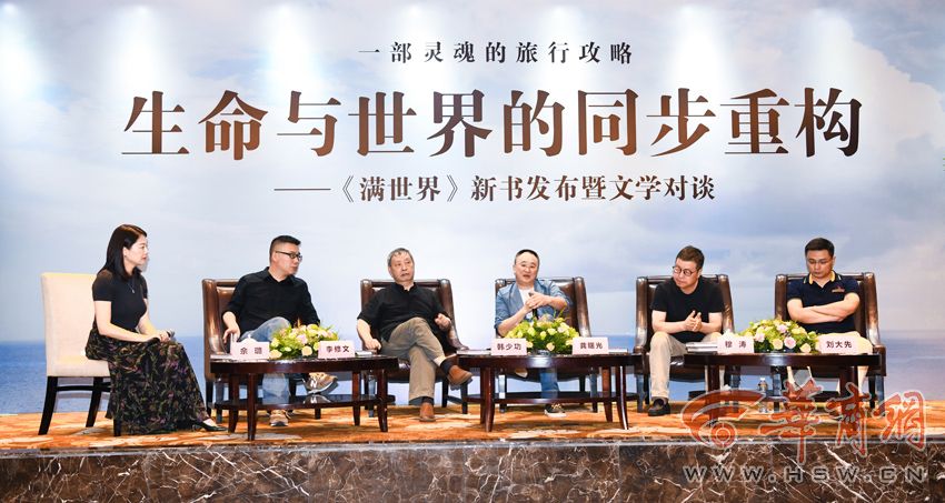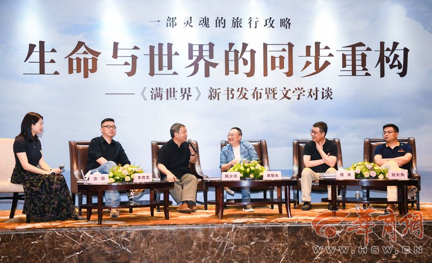 新書發(fā)布會現(xiàn)場,著名文學家韓少功,著名作家、編劇、影視監(jiān)制李修文,中國社科院研究員、《民族文學研究》雜志副主編劉大先,《美文》雜志常務副主編、陜西省文藝評論家協(xié)會副主席穆濤和《滿世界》作者龔曙光,與來自全國各地媒體記者和讀者一起,展開了一場帶著靈魂旅行的討論。