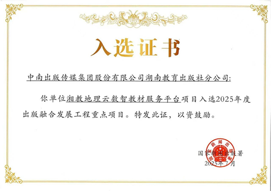 9月5日,國家新聞出版署在北京召開出版融合發(fā)展工程重點項目集中推介會,正式公布2025年度出版融合發(fā)展工程重點項目名單,共有40個項目入選。湖南出版集團旗下湖南教育出版社的“湘教地理云數(shù)智教材服務平臺”(以下簡稱“湘教地理云”)成功獲選,這是湖南出版在推動出版融合向縱深發(fā)展、賦能教育高質量發(fā)展進程中邁出的堅實一步。