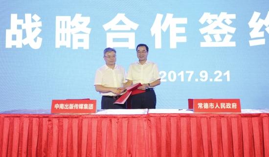 9月21日,2017常德旅游節(jié)“親親常德,浪漫之旅”推介會在常德舉行。常德市人民政府副市長涂碧波與中南出版?zhèn)髅郊瘓F股份有限公司董事、總經(jīng)理丁雙平簽署戰(zhàn)略合作協(xié)議。