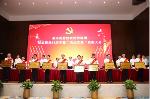 7月2日,湖南出版投資控股集團紀(jì)念建黨98周年暨“兩優(yōu)三先”表彰大會,先進基層黨組織上臺領(lǐng)獎。