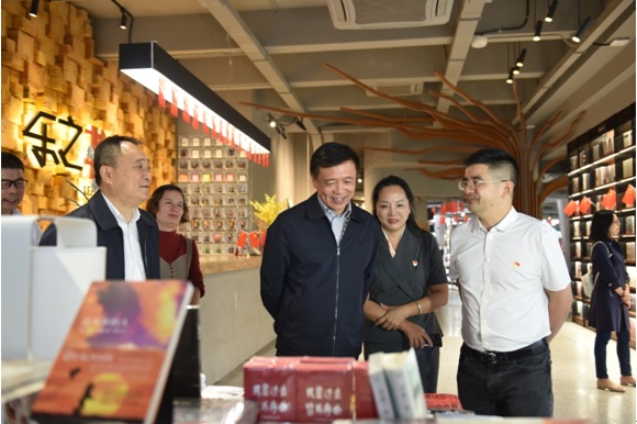 省委常委、省委宣傳部部長(zhǎng)張宏森調(diào)研長(zhǎng)沙市新華書店樂之書店·天心店。